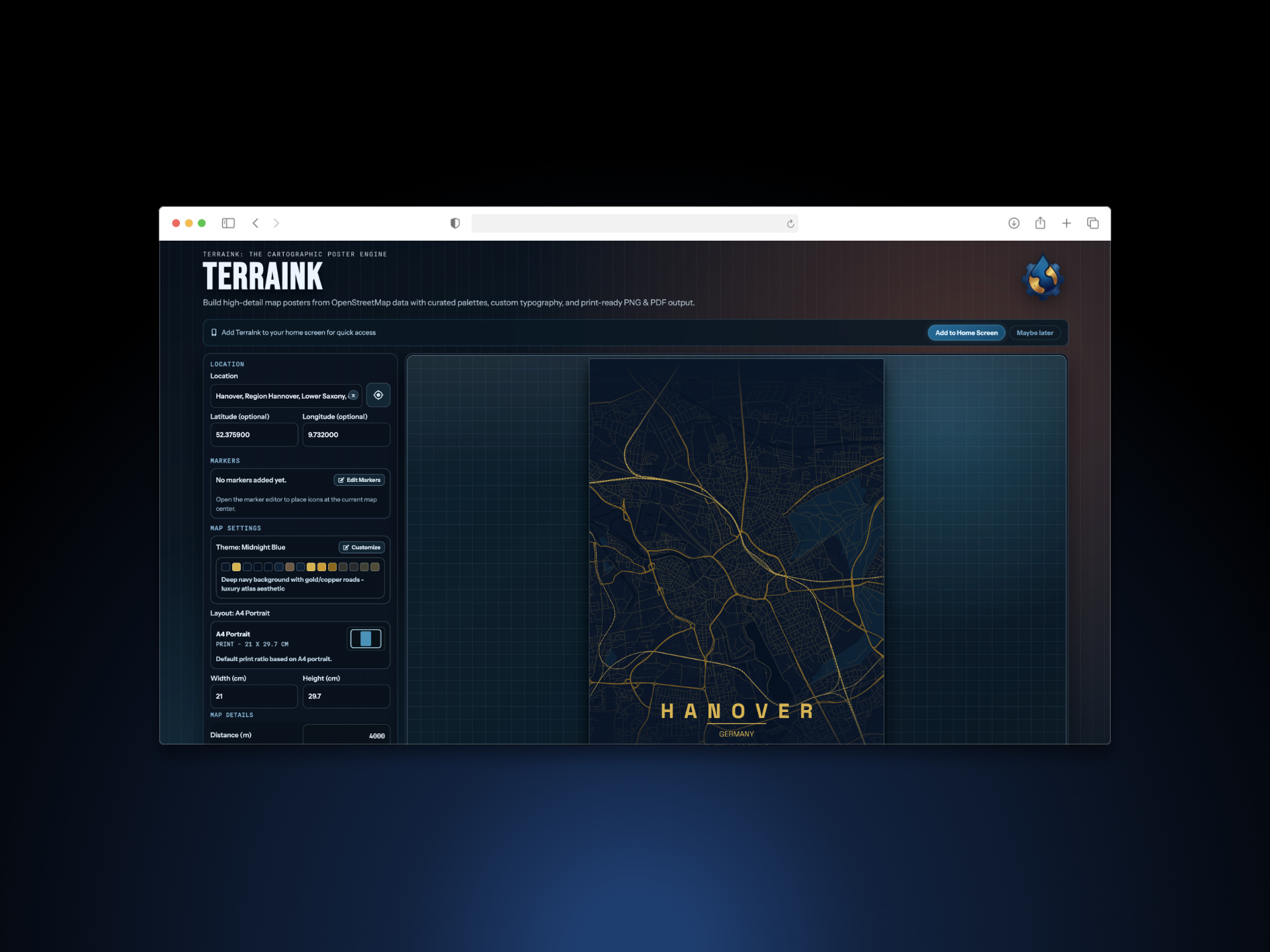 The Cartographic Poster Engine by TerraInk